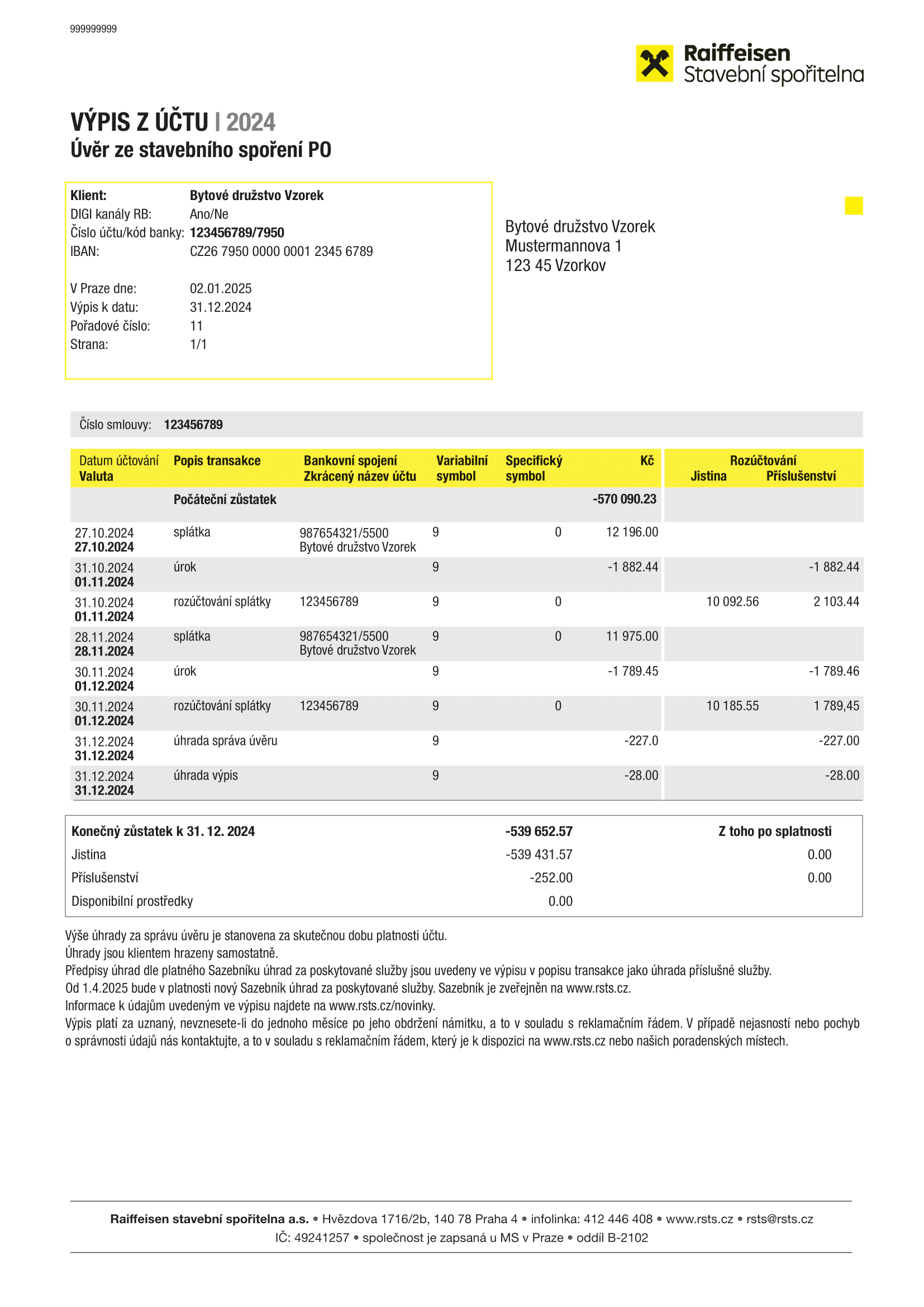 Výpis z účtu - úvěr ze stavebního spoření PO